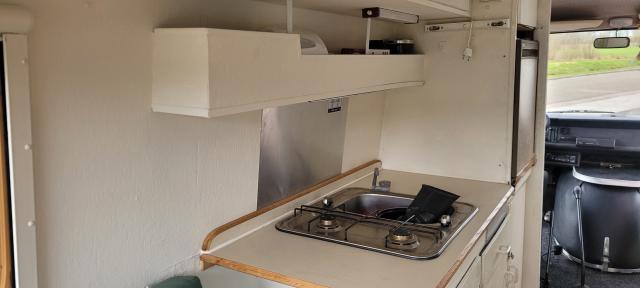 * Ruime keuken met Dometic tweepits gasstel en Bosch koelkastje (220 Volt)