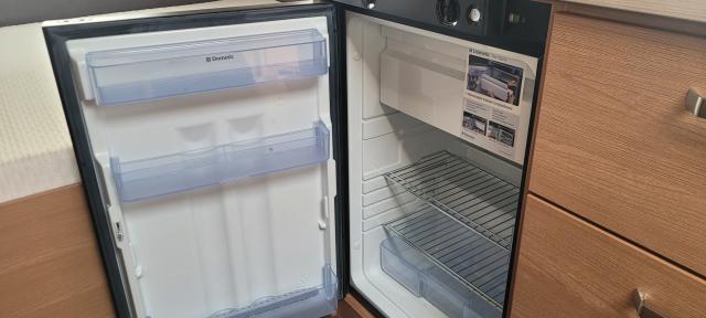• groot keukenblok met driepits Dometic gasstel, spoelbak en ruime ladenkast